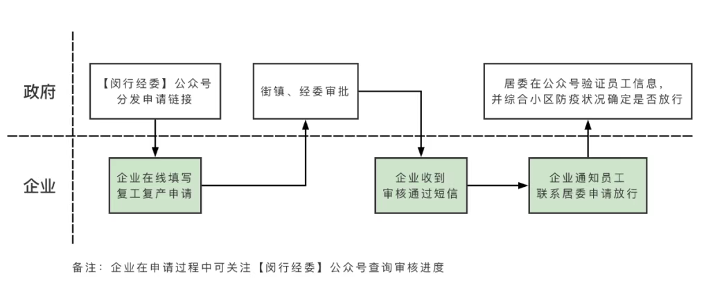 1、僅實際營業地址在閔行區的企業/網點可在線申請復產;僅實際居住地在閔行區的員工可申請復工(由企業/網點統一提交)。